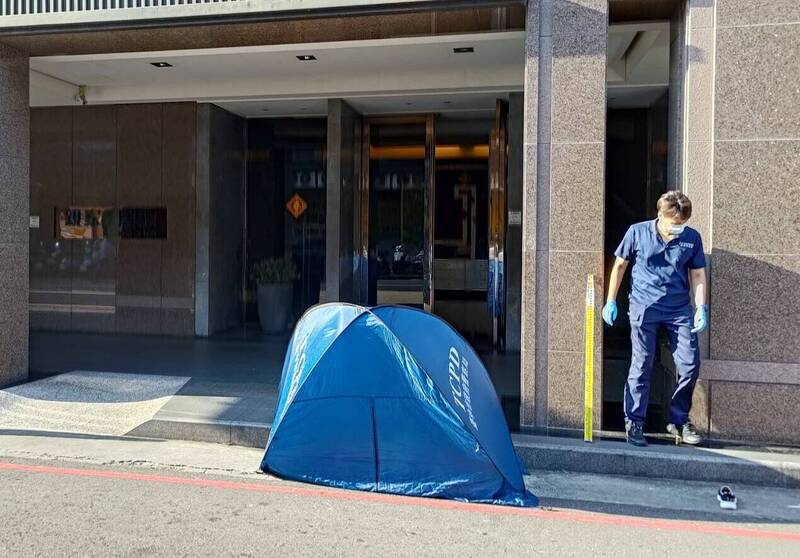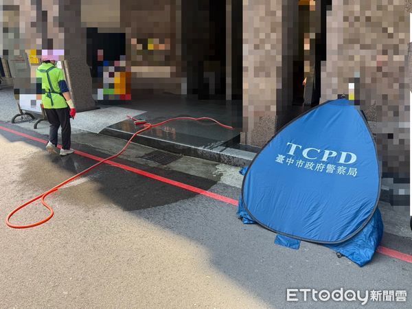 接獲通報的警方迅速趕抵現場,經過初步勘查後確認該名婦人已明顯死亡。為了維護現場與避免影響其他住戶的情緒,警方立即架設起藍色帳篷遮蔽遺體。同時,社區管理人員也緊急進行現場清理工作,仔細沖洗四處飛濺的血跡。