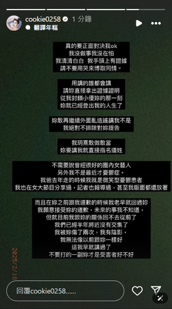 而後,根據《三立新聞網》報導,宋羽葤也出面對此說明,直指小優這一系列「哭訴操作」,就是要模糊焦點,「小優懺悔的是被閨密陷害爆料,我才是最大受害者吧!但我看到的卻是加害者在表演」,透露小優雖有致電道歉,但看不到對方誠意,「我們講了一個多小時電話,但她沒有誠懇道歉,反而是扯東扯西。所以等我整理好證據吧」。