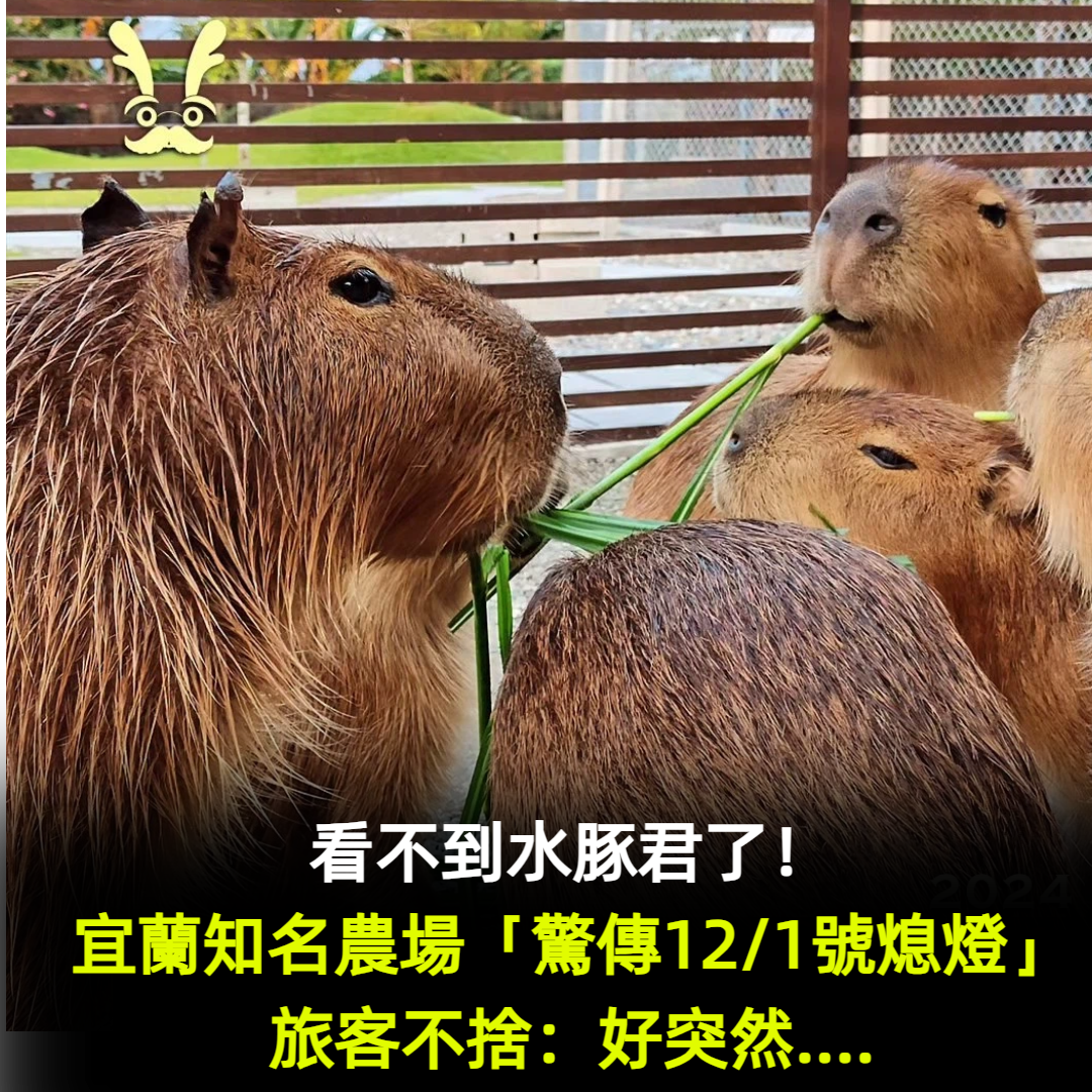 看不到水豚君了!宜蘭知名農場「驚傳12月1號熄燈」旅客不捨:好突然....