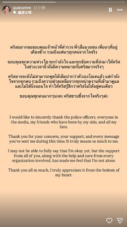 對此,受害的克莉絲丁也勇敢發聲,感謝所有位警察同仁、媒體朋友們、一直陪伴在身邊的朋友以及所有聲援的粉絲。