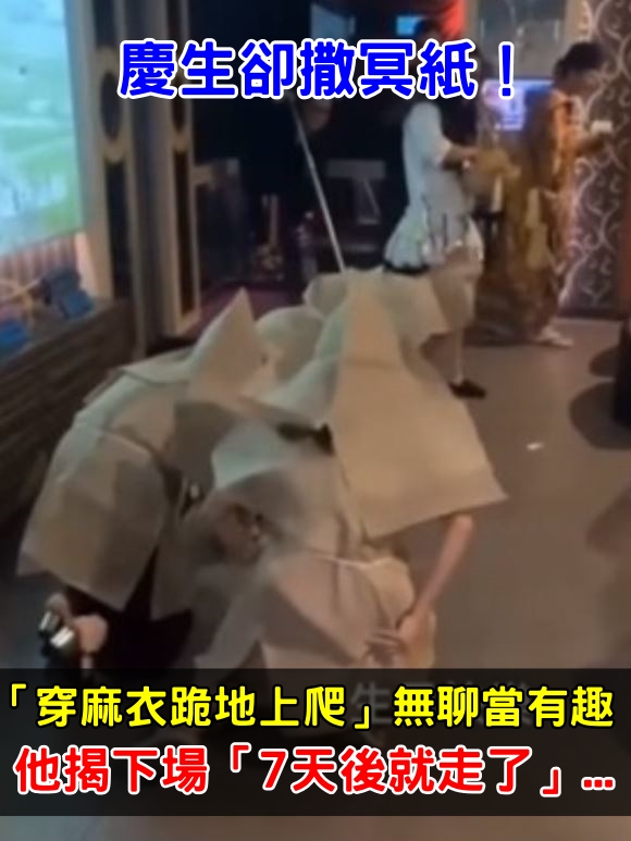 慶生卻撒冥紙!鬧著玩「穿麻衣跪地上爬」無聊當有趣 他揭下場「7天後就走了」:後悔也沒用