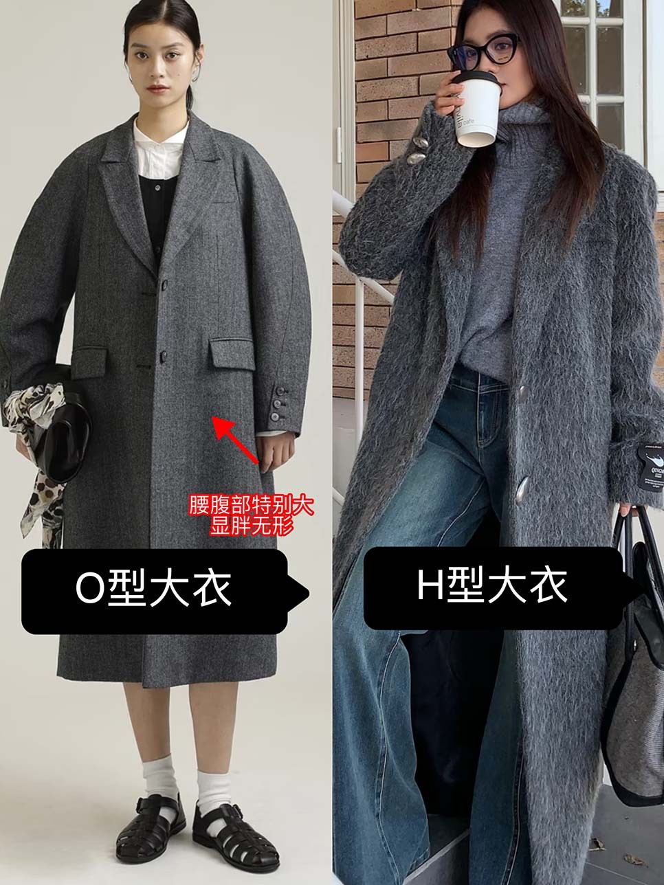 前面提到O型大衣不要穿,顯胖,那H型、X型和系帶型是可以選的。H型大衣很常見,它是線條簡潔,設計風格簡約,瘦的人更加幹練利落。