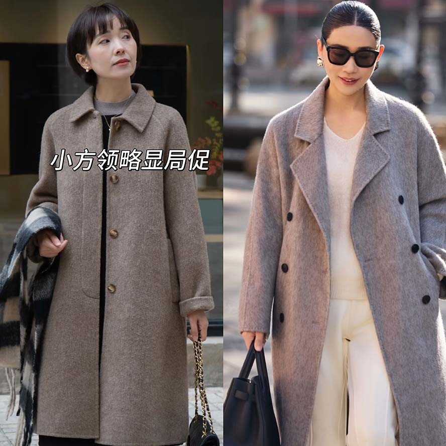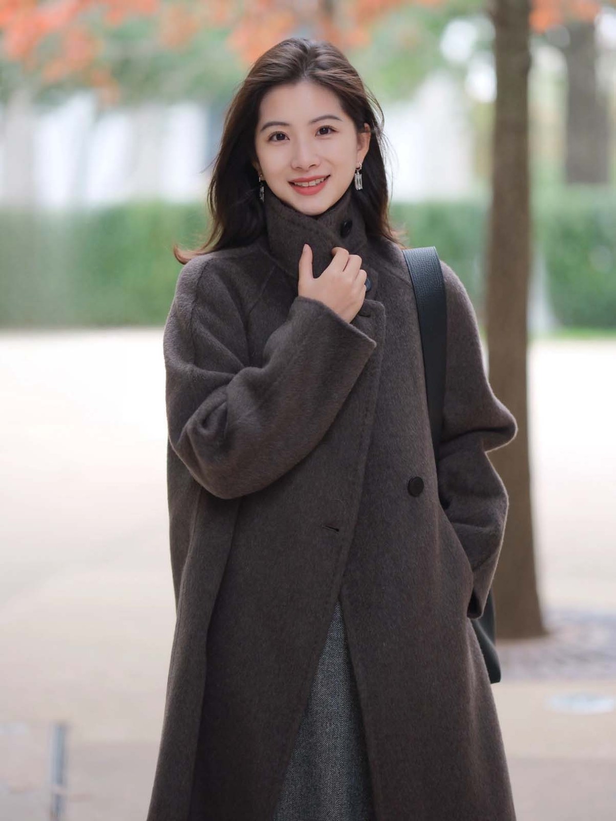 大塊的格子非常顯眼,色塊切割大,有一種喧賓奪主的既視感。小格子存在感低,但穿上很「長年齡」,太老氣了。建議大家選擇純色的大衣,清爽大氣,百搭經典,少了很多困擾。