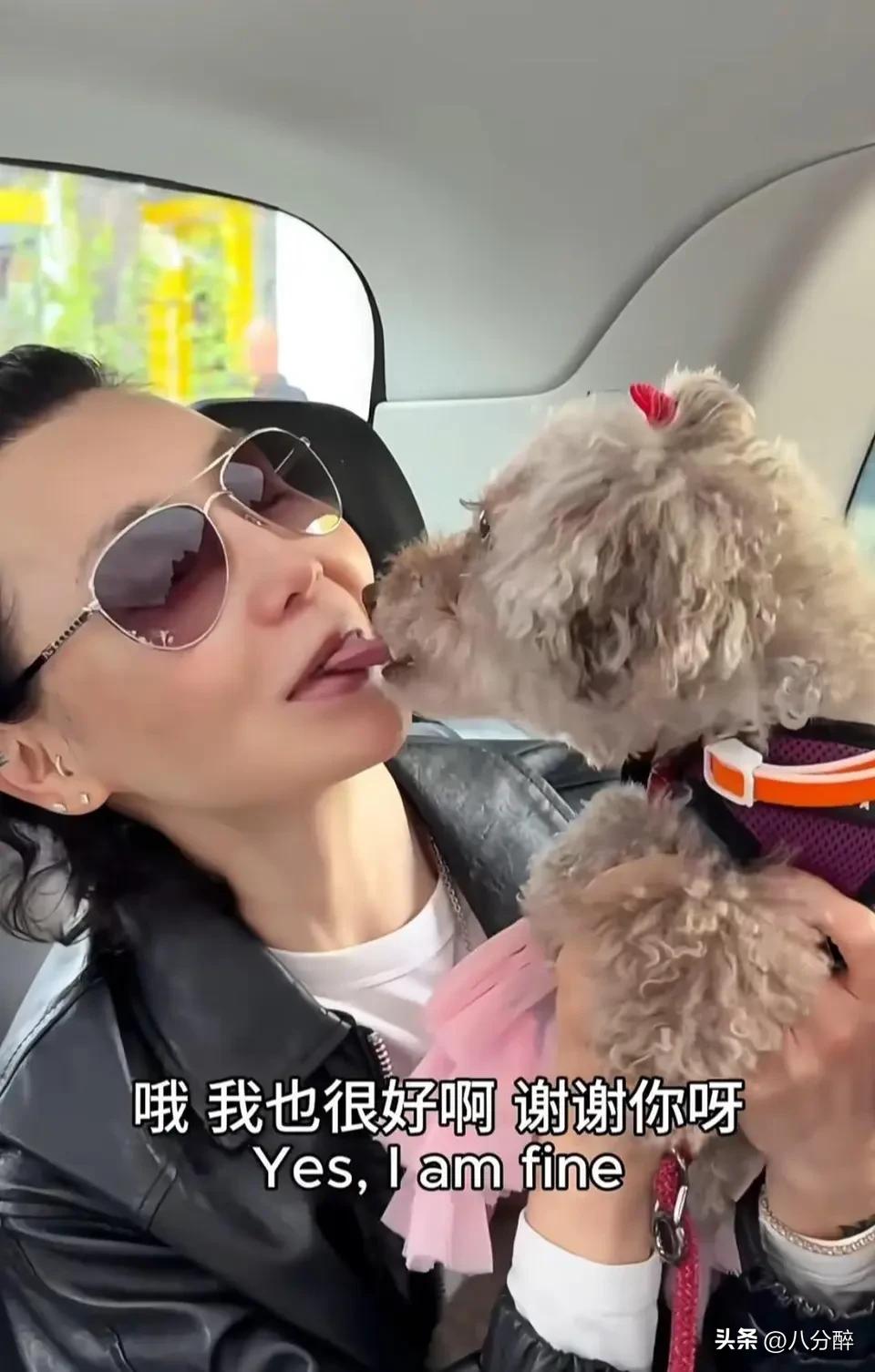 當狗狗湊過來舔她嘴巴時,她非但不躲,還笑著親回去——這種自然流露的寵愛,簡直比很多親媽帶娃還溫柔。