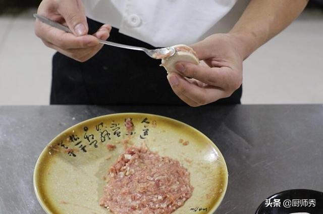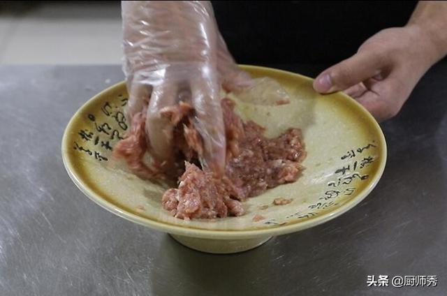 開始把豬肉末調味 ,肉末內加鹽,少許的胡椒粉去腥,再加入適量料酒,去除異味,再加生抽調味 生抽起到增鮮的作用,然後把蔥薑末加進肉餡內,攪拌均勻之後用手摔打上勁這樣口感更彈。