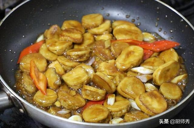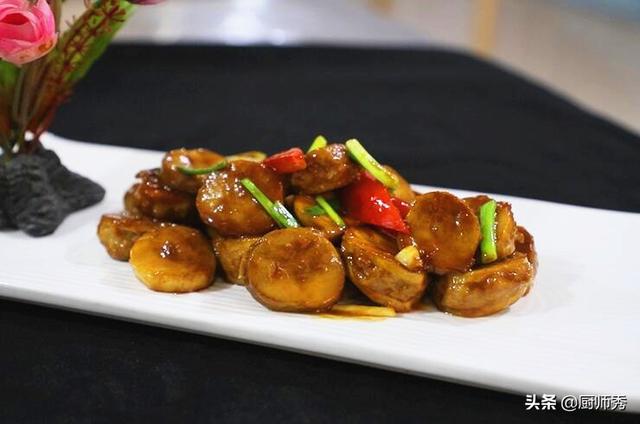 在製作這道菜的時候主要煎制的火候,不要煎糊了 ,杏鮑菇加入肉末,肉的香味和杏鮑菇的鮮味能夠互相融合,最後加清水味汁燒制,能讓成菜吃著更軟嫩。
