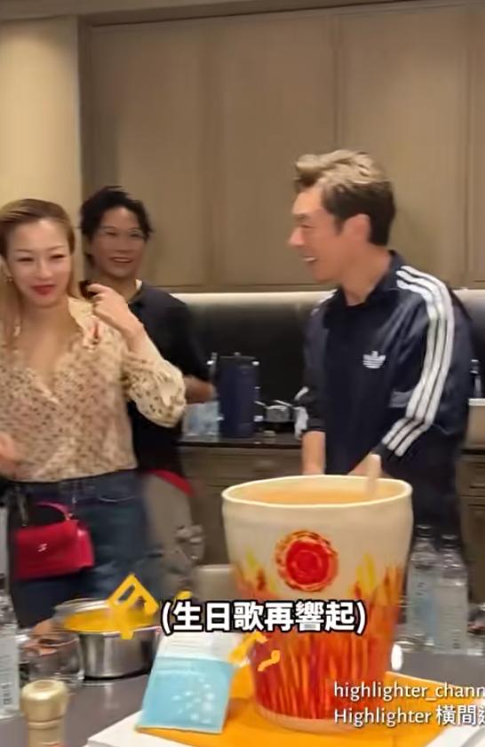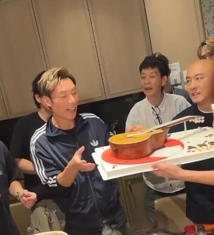 許志安可能提前不知道給自己慶生,穿得就很隨意,除了衣服是知名運動品牌外,其他和普通人沒多大區別。