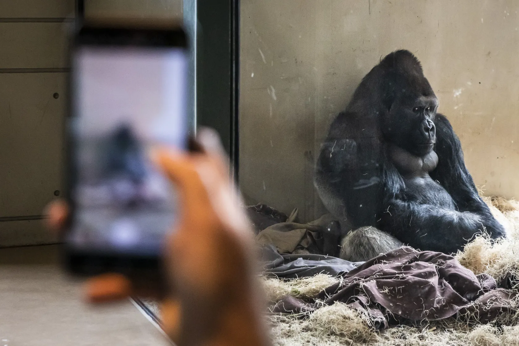 阿瑪雷平常和兩隻同齡猩猩一起住在動物園內,但工作人員發現最近阿瑪雷都不和同伴玩耍,就只是靠在展示區的玻璃邊,一待就是好幾個小時,讓動物園工作人員覺得不太對勁,後來才發現阿瑪雷原來是有手機成癮的狀況!