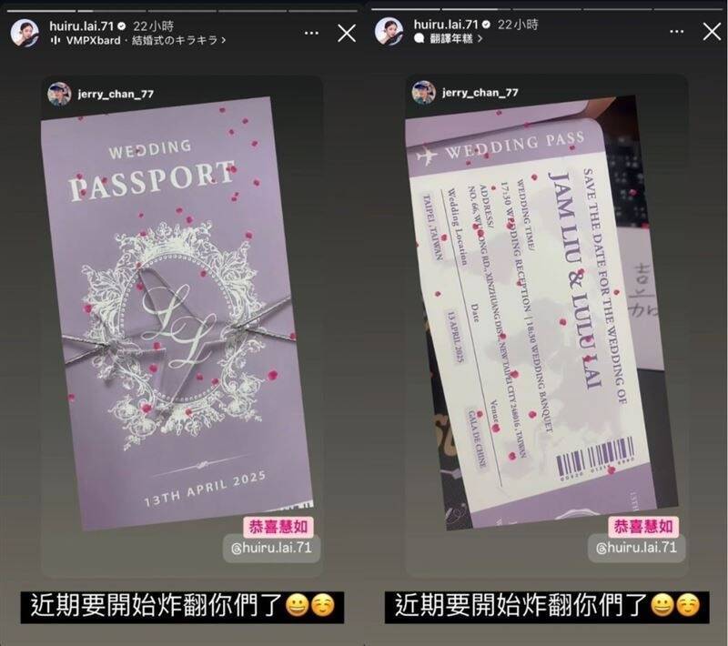 據自由時報報導,賴慧如和老公都是二婚,原本並無打算宴客,後來因為種種原因,動念起補辦婚宴,而她日前才在社群平台透露預定在4月13日舉辦婚禮,並曬出兩人的喜帖,「近期要開始炸翻你們了」。她也預估席開70桌,屆時陳美鳳、胡瓜、王彩樺等天王、天后級人物應該都會到場慶祝。