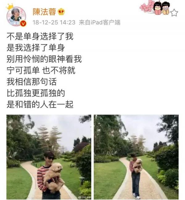 突然有一天,陳法蓉就宣布了回歸單身,而具體原因沒有人知道。