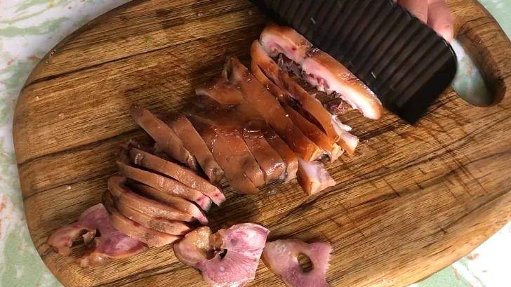 碧綠的黃瓜襯著琥珀色燒肉,紅油沿著縫隙、慢慢往下滲。夾一筷子送進嘴裡,先是小米醋的酸爽,激得舌尖一顫,接著燒肉的醇香、混著蒜香,在口腔炸開,最後留在喉頭的,竟是黃瓜特有的回甘。最妙的是燒肉皮,經過調味料浸泡後,變得Q彈筋道,和脆脆的黃瓜形成雙重奏,這口感比吃海參鮑魚還過癮!