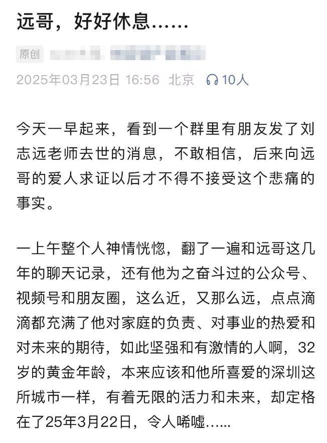 不少認識劉志遠的好友也紛紛發文悼念,字裡行間都是那樣的不捨與惋惜。