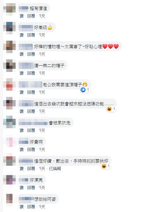 這個超狂母親節禮物曝光以後,立刻掀起熱烈討論,至今更超過1.2萬人按讚,網友紛紛表示「 不管是實質或是心意,這頂的價值都好有份量」、「媽咪手好巧,阿嬤一定很開心」 、「阿嬤戴這頂錢帽出去走路會有風」、「 好厲害,這頂無價」、「去市場買菜,錢不夠可以拿來用」;另外也有部分網友提醒,絕對不要戴錢帽出門,否則被壞人盯上可就危險啦!