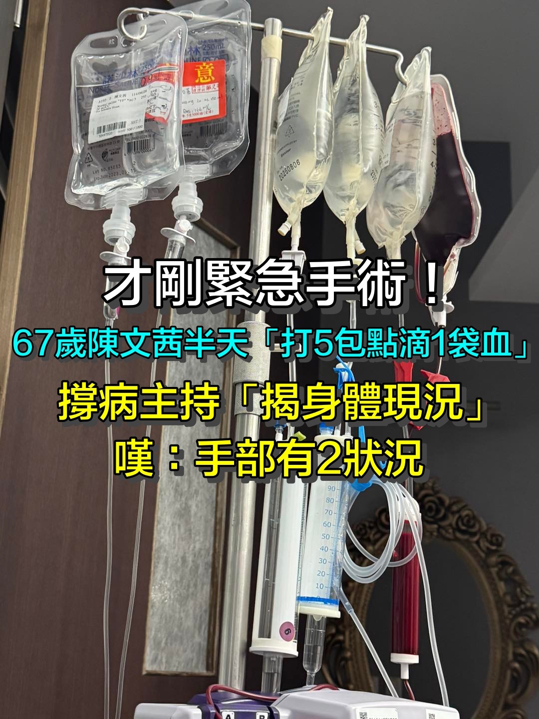 自嘲已成廢墟!67歲陳文茜「才剛緊急手術」曝:再打5包點滴1袋血 撐病主持「揭身體現況」