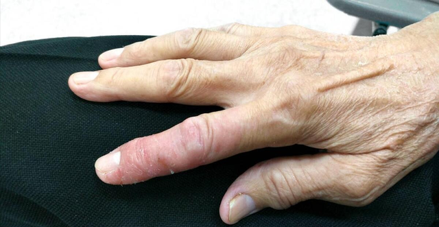 這個神秘的 「杵狀指」,又被稱為叫鼓槌指,因為它的樣子、真的特別像敲鼓用的鼓槌。具體表現就是手指、腳趾末端的軟組織像吹氣球,異常增生腫脹,整個手指、腳趾就變形增大。神奇的是,這種變化不會帶來任何疼痛,也不會影響生活,所以很多人根本就沒察覺到。