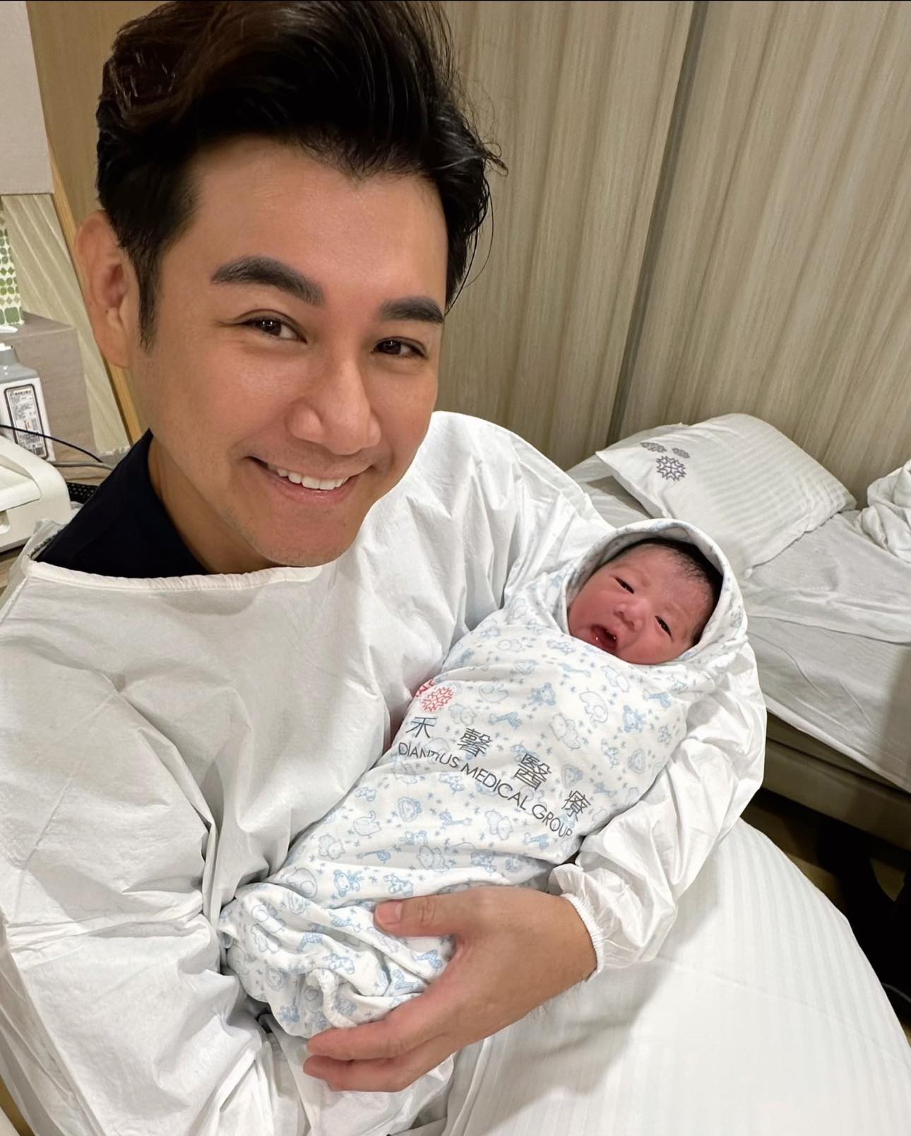 沒想到在婚宴會場上突然播放心跳聲,他欣喜證實老婆懷上第二胎,突如其來的好消息也令在場又驚又喜。而今日他證實老婆生了,昨晚到醫院待產,經過催生,終於在早上4點平安生下兒子「龍龍」,看到母子平安的那一刻,他感動到眼眶都紅了,也心疼老婆忍受一整晚的辛苦。