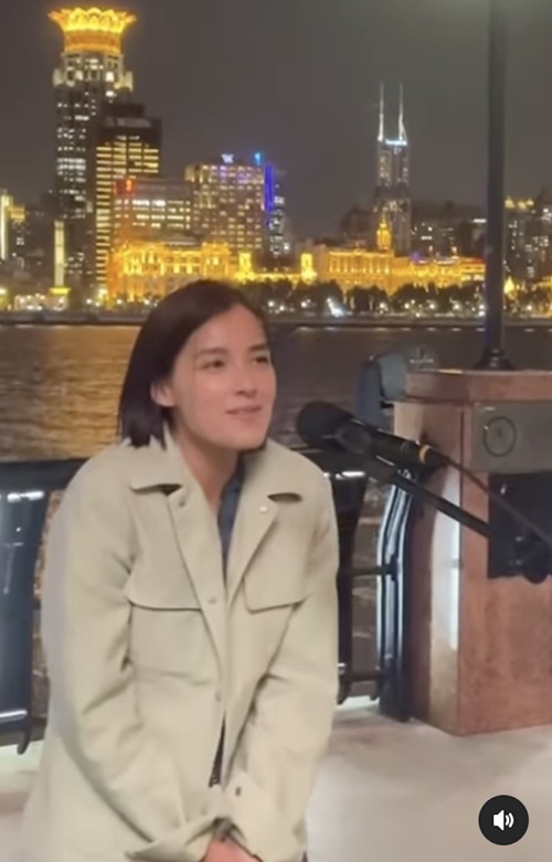 謝嘉怡在IG上傳影片,她站在直立麥克風前,身處在上海外灘,開始唱起經典金曲〈上海灘〉。她文中表示當時只有11度低溫,即使穿著外套,仍然冷到狂發抖,不過網友也誇讚她普通話已經進步許多,歌聲十分可愛。
