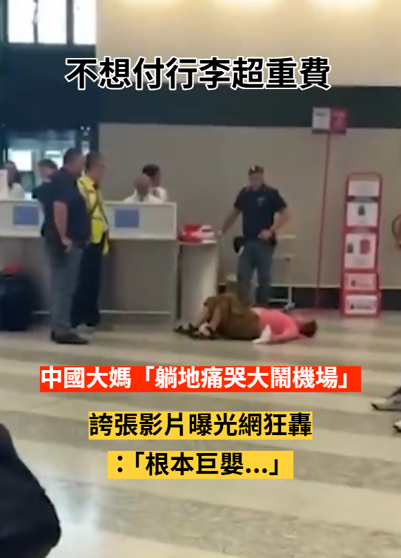 不想付行李超重費!中國大媽「躺地崩潰痛哭」大鬧機場 地勤當場傻眼「下場得不償失」