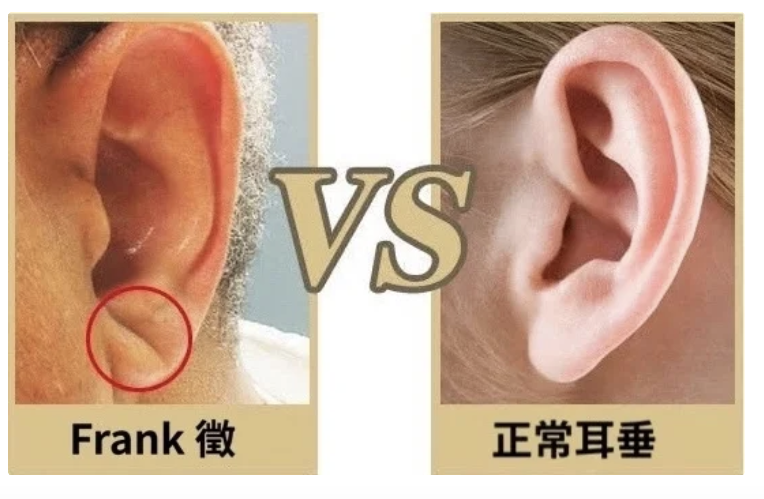事實上,耳垂摺痕又被稱為「法蘭克徵象」或「冠心溝」,是從耳垂底部延伸至耳廓的斜切摺痕,雖然不是診斷標準,但與心血管疾病、糖尿病風險升高有關。其形成與耳垂膠原蛋白流失、供血不足有關,尤其是年輕人出現,可能預示著潛在的心血管問題