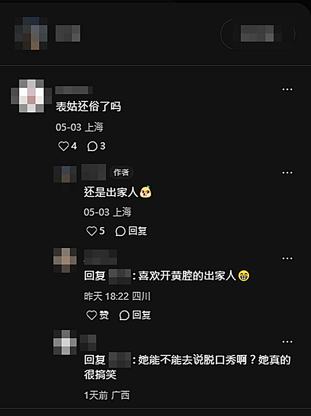 而不少人也好奇恆述法師「還俗了嗎?」對此,表侄親自回應網友:「還是出家人」其他網友則開玩笑回覆:「喜歡開黃腔的出家人」、「她能不能去說脫口秀?她真的很搞笑」表示非常喜歡她幽默的舉止與言行,很期待她能復出演藝圈!除此之外,大家也好奇退隱多年的張菲會復出?對此,恆述法師透露雖邀約不段,但考量到弟弟們年事已高,加上錄影工作壓力龐大,目前張菲仍在審慎評估中。