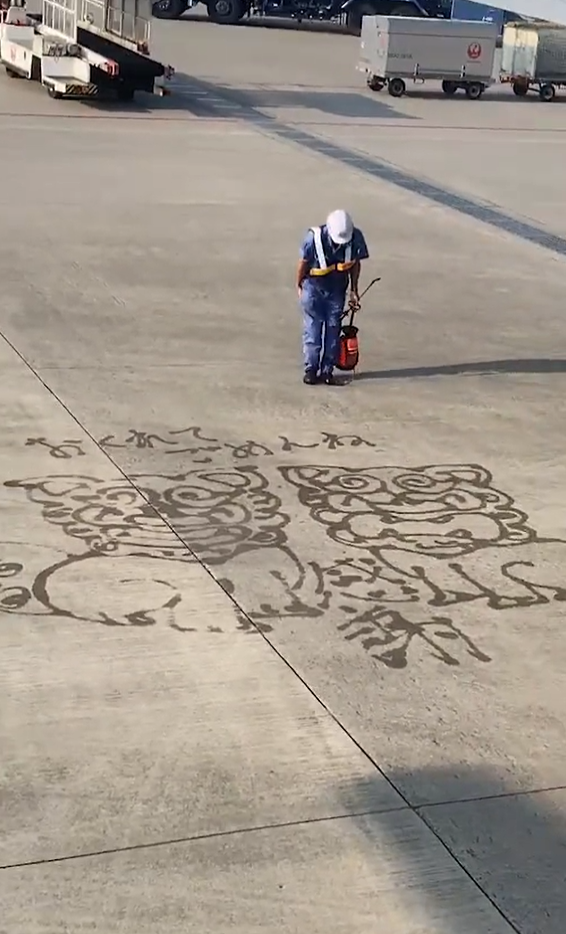 班機誤點!地勤人員大展長才「畫2風獅爺」 原地鞠躬道歉:抱歉讓乘客久等了~