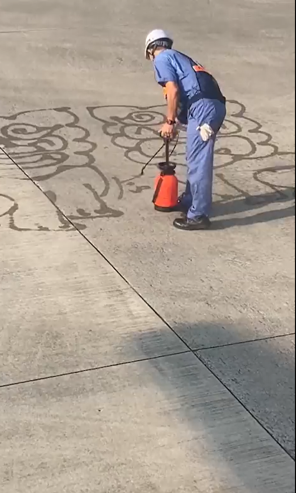 畫作因為太陽照射的關係,水痕在陽光照射下很快就蒸發,但他也迅速地補上輪廓,再寫下「飛機晚點不好意思哦」。最後,他向機上乘客鞠躬揮手道別,機上乘客也給予了熱烈的掌聲。許多網友看了這段影片後,也紛紛留言表示:「這位工作人員真的很有才華」、「能夠讓原本痛苦的等待也變成美好的回憶,真的很不錯」。