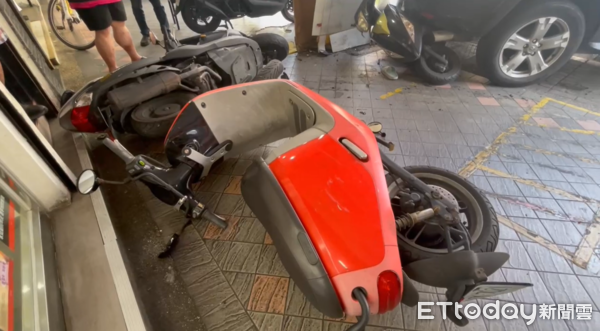 台北市今天(27日)下午,竟然又發生老翁開車撞人事件,事發於延平北路三段延三夜市附近,一名74歲鄭姓老翁無照駕駛,倒車時突然暴衝撞進騎樓,造成一名男騎士遭撞倒,多輛機車也遭到波及,畫面駭人。