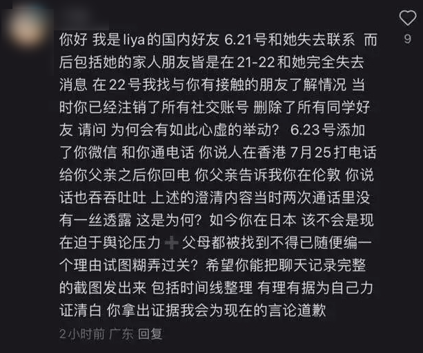 然而有位自稱是雅典娜友人的網友留言反駁,指出雅典娜在6月21日失去聯繫後,李女就註銷所有社群帳號,一下又說在日本一下又說在倫敦,要求她拿出證據證明自己的清白。如今更有消息提到,雅典娜手機呈現關機狀態,家屬還支付了80萬人民幣(約350萬元台幣)的贖金仍找不到人,十分擔心她的人身安全, 而粉絲們也祈禱希望她能早日平安回家。