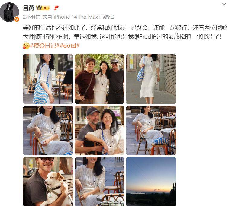 8月6日,呂燕分享了一家三口去度假的照片,並寫道:「美好的生活不過如此了,經常和好朋友一起聚會,還能一起旅遊,還有兩位攝影大師隨時幫你拍照,幸運如我,這可能是我跟Fred拍過最放鬆的一張照片了。」