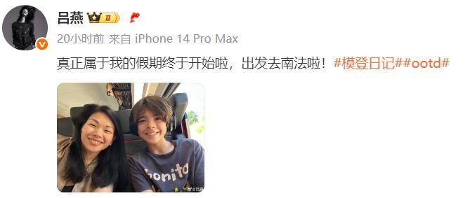 早在前一天,呂燕就發文告知,說一家人出發前往南法,並曬出和兒子的合照,13歲的Arthur很帥氣、長得像爸爸,而身材遺傳了媽媽,才13歲身高就超過了170公分,是個大長腿帥哥。