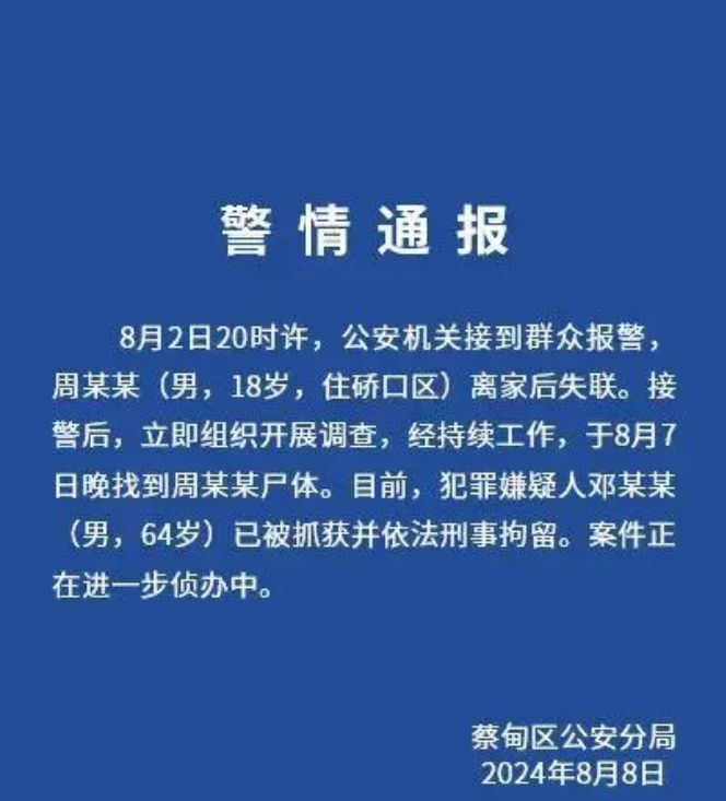 離家失蹤6天!18歲高中生找到時「已成冰冷遺體」 警曝監視器「兇手是64歲鄰居」 Elmo 2024-08-12 檢舉 有知情人士透露,周男的爸爸,跟鄰居之間以前有些恩怨,疑似為此而犯下殺手,周男的姊姊痛心直呼,弟弟是自己一手養大,如今慘遭毒手,完全不知道怎麼面對,也不敢跟媽媽說,更憤怒嗆聲嫌疑犯,說是「失手殺害」,痛批根本是藉口;目前該名老先生鄰居已經遭到拘留,後續則要等待更詳盡的調查。怎麼會這樣...資料來源:《ETtoday》 Advertisements 回首頁 2/2 Advertisements 編輯精選推薦 More + 天生命好!老了無病痛「能長壽」的4個生肖女 晚年不給子女添麻煩「一生福氣多多」 大咖男星妹妹出嫁!全身金飾「曾獲近千萬豪宅」嫁妝豐厚 兄妹長超像「一看媽媽懂了」:基因強大 功德圓滿了!台語歌后「悲曝他離世」享壽95歲 淚喊:去當快樂的神仙吧... 6歲童長膿癬永久禿頭!醫檢查驚「兇手竟是牠」小孩易感染 快訊/才過1年!賴佩霞驚傳「他不幸身亡」急飛美國奔喪 臨終前「女兒陪在身旁」 男子突發腦出血走了!醫生怒斥:「吃降壓藥時候,沒有注意這3點!」 慘遭飛車拖行!八點檔男星「臉全磨爛」驚悚畫面曝 目睹女星「崩潰嚇哭」頻發抖 15歲兒「睡夢中離世」!本土女星「送愛子火化」求做1事 「PO照圓滿了」:媽媽和你永不分開 離婚11年!洪榮宏愛女結婚「終破冰前妻」 「2爸爸牽她進場」催淚畫面曝 一家8口住飯店!月花16萬「連住3年還想續住」嗨喊省更多 知情人「曝內幕」:其實有房子住 27歲男每天喝7、8瓶!走路掰咖去檢查「骨頭全壞死了」 親自抱下女兒遺體!郭主義喪女5年「鼓起勇氣做一事」 潰堤曝「心碎畫面」:永遠做妳驕傲的老爸 慶祝17歲愛女畢業!53歲大咖「兒女皆讀名校」年花千萬 驕傲「她獲三大獎」:又美又自信 24歲兒失明!于美人爆「他在飯店掃廁所」維生 不盼紅包只求「別再花我的錢」 快訊/普發現金又來了!這市長霸氣宣布「每個人再發6000元」 晚年兒孫滿堂!73歲影壇大哥「拄拐杖現身」腳步蹣跚 兒子「全程攙扶不喊累」網羨:又帥又孝順 全遣送中國!台灣873名詐騙犯慘了「外交部出面回應」 本土劇女星生了!7年前凍卵「終於來到我身邊」 歌手尪嗨喊:生個足球隊 台語歌后慟別摯愛!告別式上認「早隱瞞病情」 道歉哭喊:原諒我簽放棄急救 王力宏驚喜宣布「再度當爸爸」當場激動落淚! 曾比江蕙紅!台語歌后「爆未婚生子」遭指指點點 「2次手術害癱瘓」72歲近況曝 22歲愛女病逝!資深男星「走不出喪女痛」留白長髮現身 掛骨灰項鍊「代女做1事」惹淚 快訊/曾叱吒政壇!蔡英文「最信任的她過世」 死訊被證實「已舉辦告別式」 相差18歲!58歲康康自爆「與老婆分房12年」驚呆眾人 提到沈玉琳「坦言罹同1病」:必須警惕... 再婚2年了!43歲李燕突喊「當媽媽實在太辛苦」 認「已經有愛的結晶」:最完美的幸福❤️