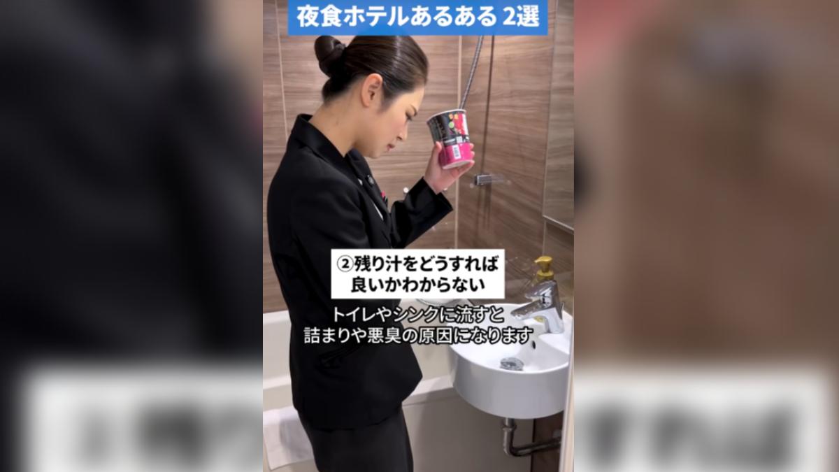 另一個更讓飯店困擾的問題,就是泡麵吃完後的湯汁處理。許多旅客會選擇將剩餘湯汁倒入馬桶或浴室水槽,但這可能造成管線阻塞或產生異味。B Suites飯店特別提醒,正確的做法是將吃剩的泡麵直接放在桌上,讓隔天的清潔人員協助處理。