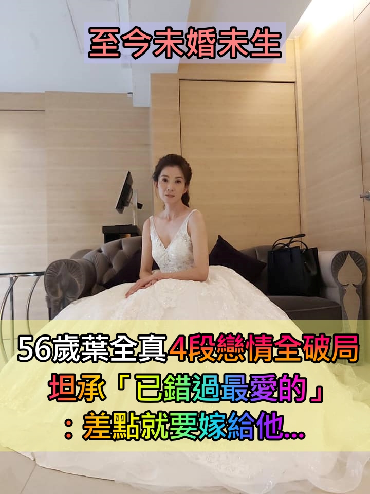 甘願住養老院!56歲葉全真「一輩子不結婚不生」4段戀情全破局 坦承「已錯過最愛的」:差點要嫁了
