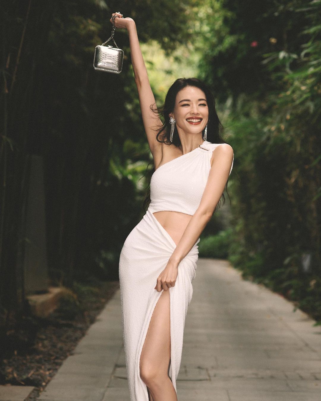 根據《自由時報》報導,舒淇日前在三亞出席活動,凍齡美貌一出場就成為鎂光燈焦點,只見她身穿一襲腰間挖空的白色連身洋裝,斜肩設計貼合絕美身材曲線,往下一看裙擺竟開高衩到腿根,一次露出性感蠻腰和筆直長腿,搭配她招牌開朗笑容,美到令人難以置信,不敢相信她已經46歲了。