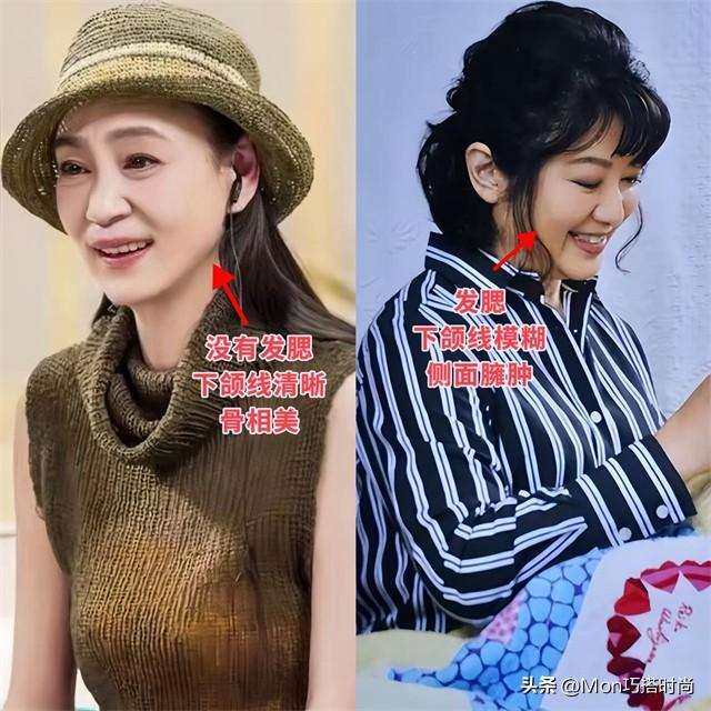 然而,歲月這把雙刃劍,也在她的臉上留下了痕迹,尤其是近年來,明顯可以看出她的臉部出現了「發腮」現象,腮幫子變得圓潤,臉部輪廓不再像年輕時那般清晰立體。
