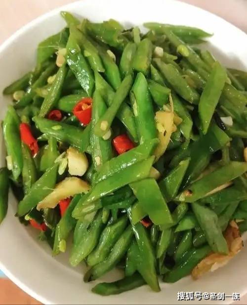 材料:扁豆 200克、干辣椒 適量、大蒜 2瓣、生薑 適量、食用油 適量、鹽 適量、生抽 適量、細砂糖 適量、醋 適量(可選)