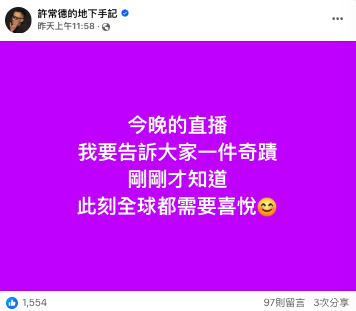 圖/翻攝自 許常德的地下手記 臉書