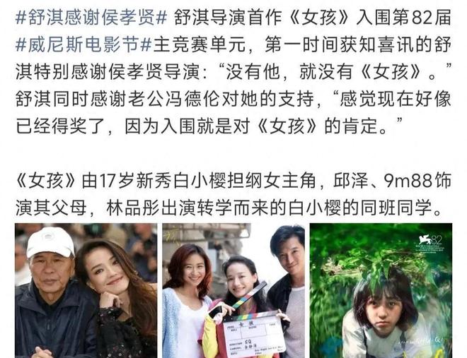 根據《大紀元》報導,這次自導自演的處女作入圍威尼斯影展,收到這項振奮人心的消息時,舒淇欣喜若狂,在下榻飯店開心尖叫。她感到既驚訝又喜悅,並謙虛表示:「入圍就已經是對《女孩》最大的肯定。」特別值得一提的是,她第一時間就感謝了生命中的重要貴人-侯孝賢導演,並強調「若沒有侯導,就不會有這部作品」,同時也向工作團隊及導演丈夫馮德倫致謝。