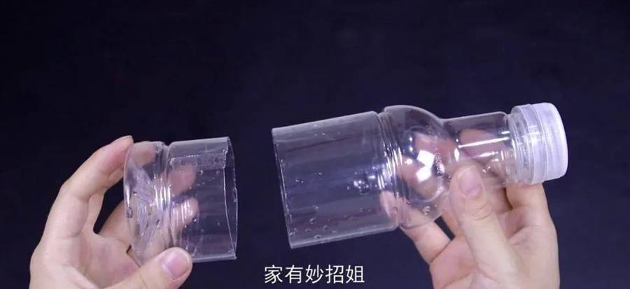 將瓶蓋和筷子固定好后,我們把瓶蓋擰回瓶子上,再用剪刀在瓶子開口的部分,豎著剪成流蘇狀。全部剪好,一個疏通馬桶的神器就做好了。