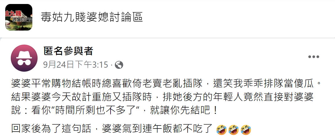 婆婆平時「愛插隊」還沾沾自喜!某天故技重施「被年輕人神回一句反擊」媳目睹笑翻:她回家氣到吃不下