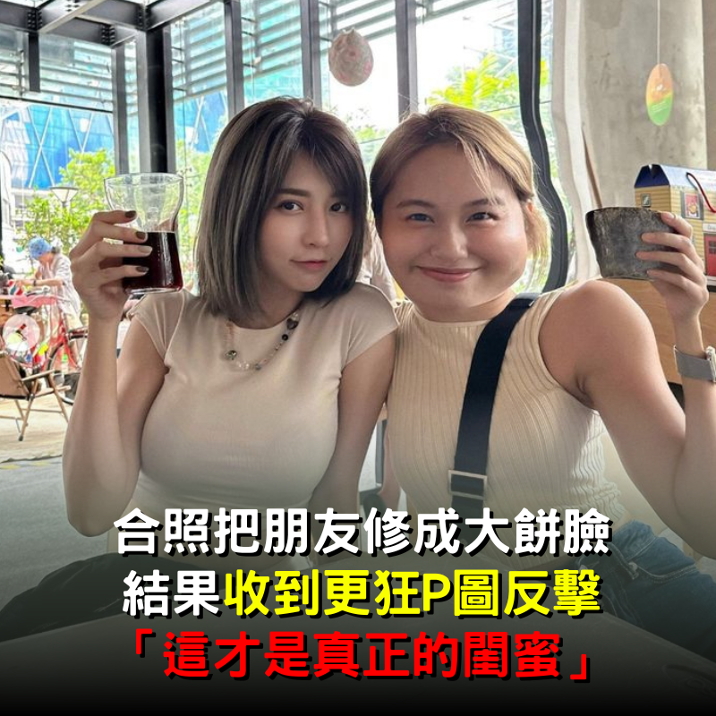 一起互相傷害!她曬照「把閨蜜修成大餅臉」超爆笑 結果「收到更狂P圖反擊」網笑翻:真正的閨蜜