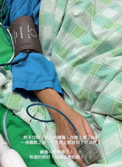 而時隔3個多月,黃宏軒發文指出母親接受重大手術,成功切除體內的大型腫瘤。雖然一度被送進加護病房觀察,但在醫療團隊的細心照料下,術後恢復情況理想。經過一個難熬的夜晚,黃宏軒終於收到母親已經成功轉入普通病房的好消息。