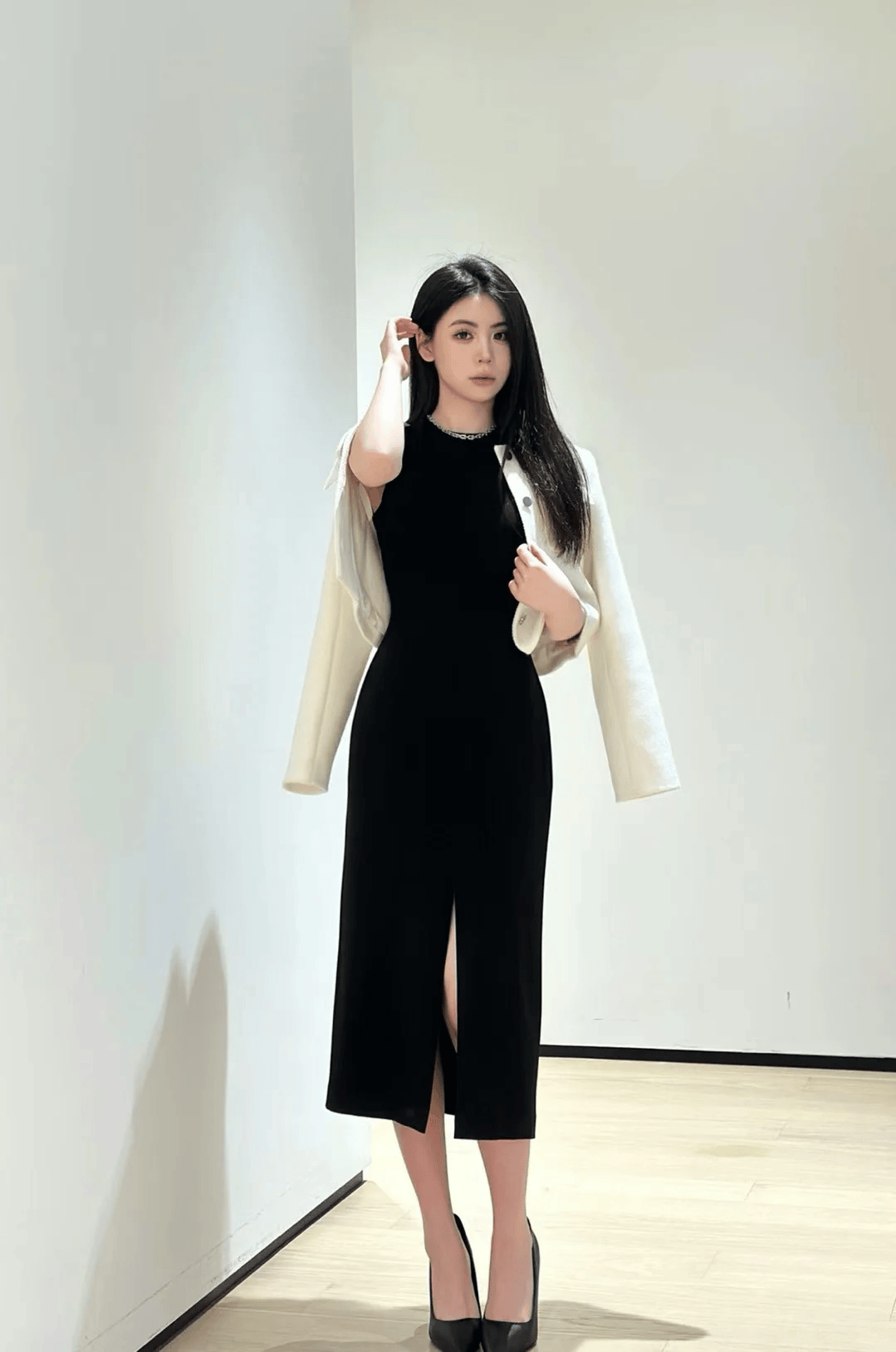 與茶歇裙不同,開衩裙的核心亮點在於裙身的開衩設計。這種設計打破了傳統裙裝的沉悶感,為整體造型注入了一絲靈動與性感。