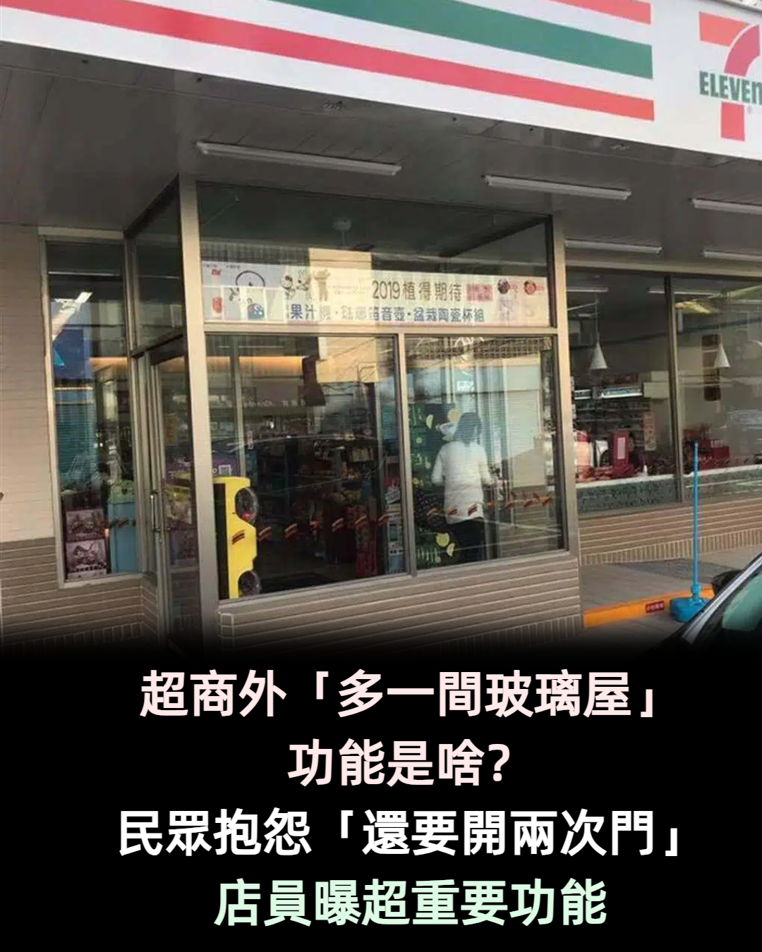 便利商店外「多一間玻璃屋」功能是啥?民眾抱怨麻煩「還要開兩次門」店員出面解答:不只防搶 Sabrina 2026-02-10 檢舉 (圖片來源:ettoday新聞雲)原來一個小小設計有那麼多功能啊~來源:PTT、爆廢公社、ettoday新聞雲 Advertisements 回首頁 2/2 Advertisements 猜你會喜歡 路口大升級!斑馬線「多3條白線」幹嘛用 交通部揭「超貼心用途」:目標事故人數下降50% 新房建築外「出現神秘黑金屬條」用途成謎 神網友曝設計「不只是為了美觀」:還有重要功能 編輯精選推薦 More + 14歲少女「肚子痛1個月」!醫師開刀「取出長達210公分毛球」:這習慣害的 垃圾變絕美收藏品❤️她把「小小瓶蓋當畫布」繪出風景畫 一出手「黑色蓋子→星空下神社」絕美無比 過年前大掃除後!6歲女孩「連續發燒17天」 緊急送醫「腦被啃出20多洞」醫嚇壞:再晚就來不及 刺青刺上癮!28歲女子「全身刺滿刺青」連眼球都染色 刺青前「清純臉蛋曝光」網嘆:太可惜了 不常換大頭貼的女人!通常「都是這4種性格」:她們真的很厲害 10歲男童驚傳「祖母家上吊輕生」!留下一封遺書「寫給媽媽」 剪頭髮變去邊!插畫家畫出「吐司先生凸槌日常」爆紅 開車「載長棍麵包先生出門」畫面更ㄎㄧㄤ 淡出神隱多年!樂壇歌后「57歲曬高難度健身照」 神凍齡「轉行成老師」網驚:看不出年近花甲 85歲失智父身亡!林葉亭突宣布「皈依佛門」 遇大師「開示一番話」忍不住淚崩 我和老公「結婚5年沒孩子」公婆都圍著罵...這時鄰居過來「指了指我的鞋子」全家都沉默了 早就確認過可以帶!訂餐廳慶生「自備蛋糕被收2086元」 她質疑合理嗎「老闆出面回應了」 半夜家中被丟地雷!狗狗「發現不對勁」衝下樓 毫不猶豫「用嘴含住」結局網全看哭 不是穿黑色就顯白!亞洲女性「皮膚偏黃」易顯老 衣服「多穿3種高級色」:顯白氣色又好 前妻去世「我萎靡不振」2年後終於再婚 婚禮上「服務員在門外大喊一聲」我立刻取消了婚禮 全身都是刺青!她只花4年時間「將自己變成骷髏」 原本樣貌曝光「清純又可人」網震驚 女人不管什麼年紀!闊腿褲千萬別配「這3雙鞋」 顯矮又土氣:真的很難看 快訊/桃機罕見!3航班10分鐘喊「Mayday」求救 驚險錄音曝光 親自抱下女兒遺體!郭主義喪女5年「鼓起勇氣做一事」 潰堤曝「心碎畫面」:永遠做妳驕傲的老爸 姊姊、姐姐到底怎麼分?超基本題目「竟有29萬人答錯」 正解曝光網呆了「以前真的不知道」 夢想當韓國美女!她竟全臉爆改「縫單眼皮」整成塑膠人 「整型前樣貌曝光」網嘆:可惜了這美貌 豪喊要生53子!知名大咖「1夫8妻爽吃軟飯」 如今「鬧翻下場超慘」 臨時找不到保母!女學生硬著頭皮「帶寶寶去大學上課」 教授霸氣伸手「寶寶我來抱吧」畫面超溫馨 「除夕四不貼,貼了一年霉!」 過年「這4種春聯不要貼」:小心漏財又漏福