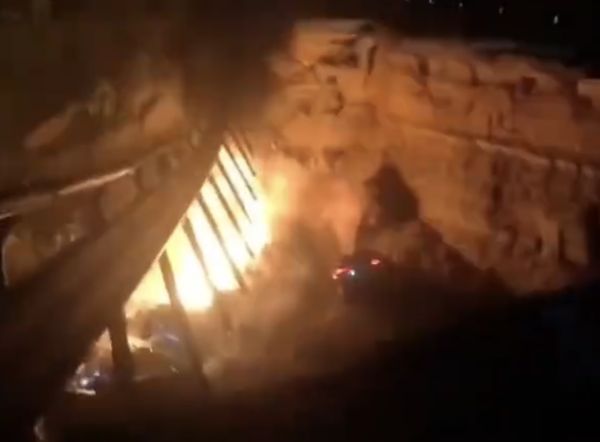 現場狀況曝光,發生事故的高速公路,沿路都是閃著燈光的救援車輛,更有目擊者聲稱看到七八輛車掉到橋下起火,能看到高速公路橋墩起火燃燒的畫面,在黑夜中格外明顯,還能看到路面塌方面積不小,護欄也變形,影片中還能聽到孩子哭喊聲,讓人相當痛心!