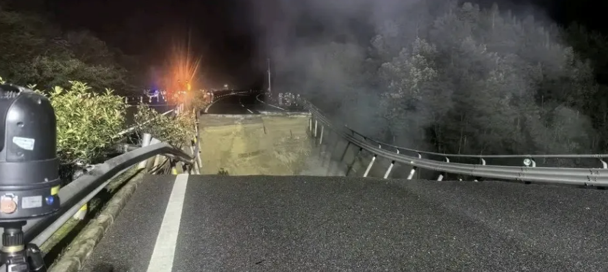 根據《ETtoday》報導,綜合陸媒指出,5月1日約凌晨2時10分,梅大高速大埔往福建方向K11+900m(茶陽路段出口方向2公里左右)附近,發生高速公路路面塌陷事故,有18輛車當場墜落受困,接獲事故報告後,梅州市及大埔縣公安、緊急、消防、衛健等相關部門迅速趕赴現場進行救援。