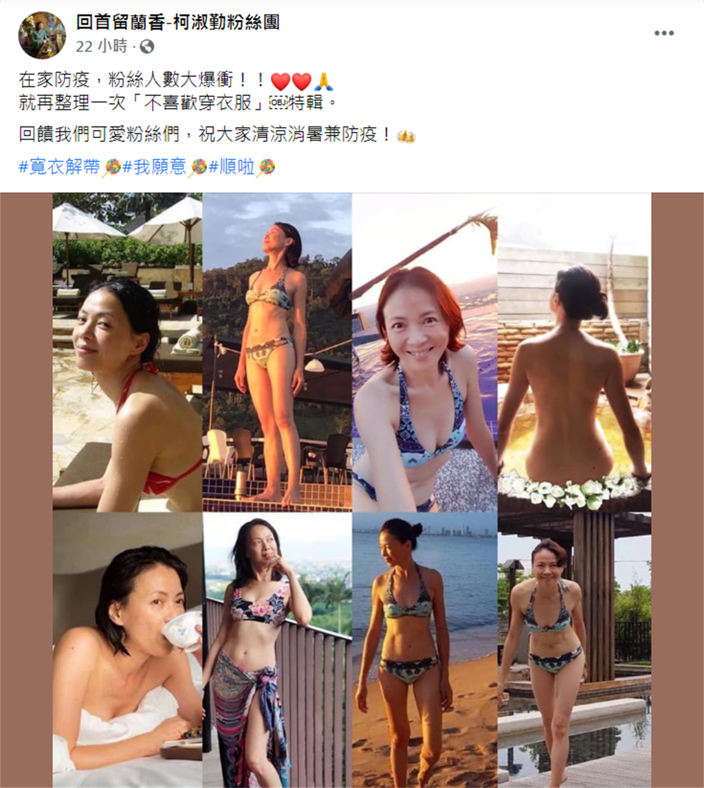 隨著先前某段時間,大家上網的時間變多,許多粉絲團的人數也上升,58歲金鐘影后柯淑勤決定用辣照回饋粉絲,讓人超驚喜!
