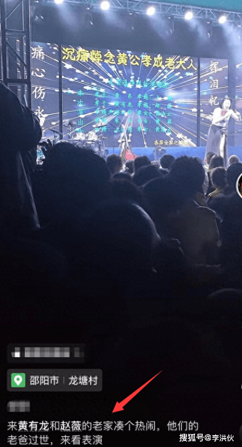 照片顯示,這個喪禮的確是在老家龍塘村舉辦的,整個村子十分熱鬧,舞檯燈光絢爛,還專門請了女主持人上台吆喝,如果不是上面的字,真以為是誰家老人過壽呢。