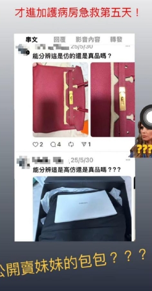 更令人錯愕的是,蔡語芯的哥哥在她昏迷的第五天,就在社群平台threads上張貼大量女用精品包照片,詢問真偽辨識方法。貼文內容寫道:「整理我妹的遺物,有真品、有高仿,包太多,我分辨不出來。」