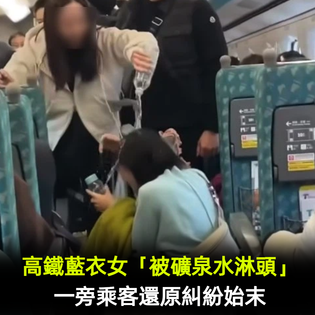 高鐵藍衣女子「被礦泉水淋頭」蹲地上狂尖叫 一旁乘客「還原糾紛始末」警察到場後續曝光